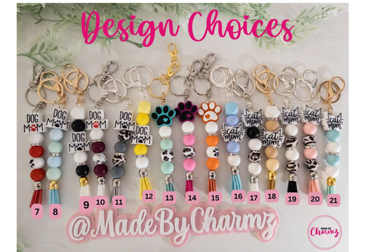 Dog and Cat Mom Silicone Beads Keychain/Wristlet
