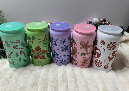 Strawberry Glass Can| Floral Rainbow Glass Can