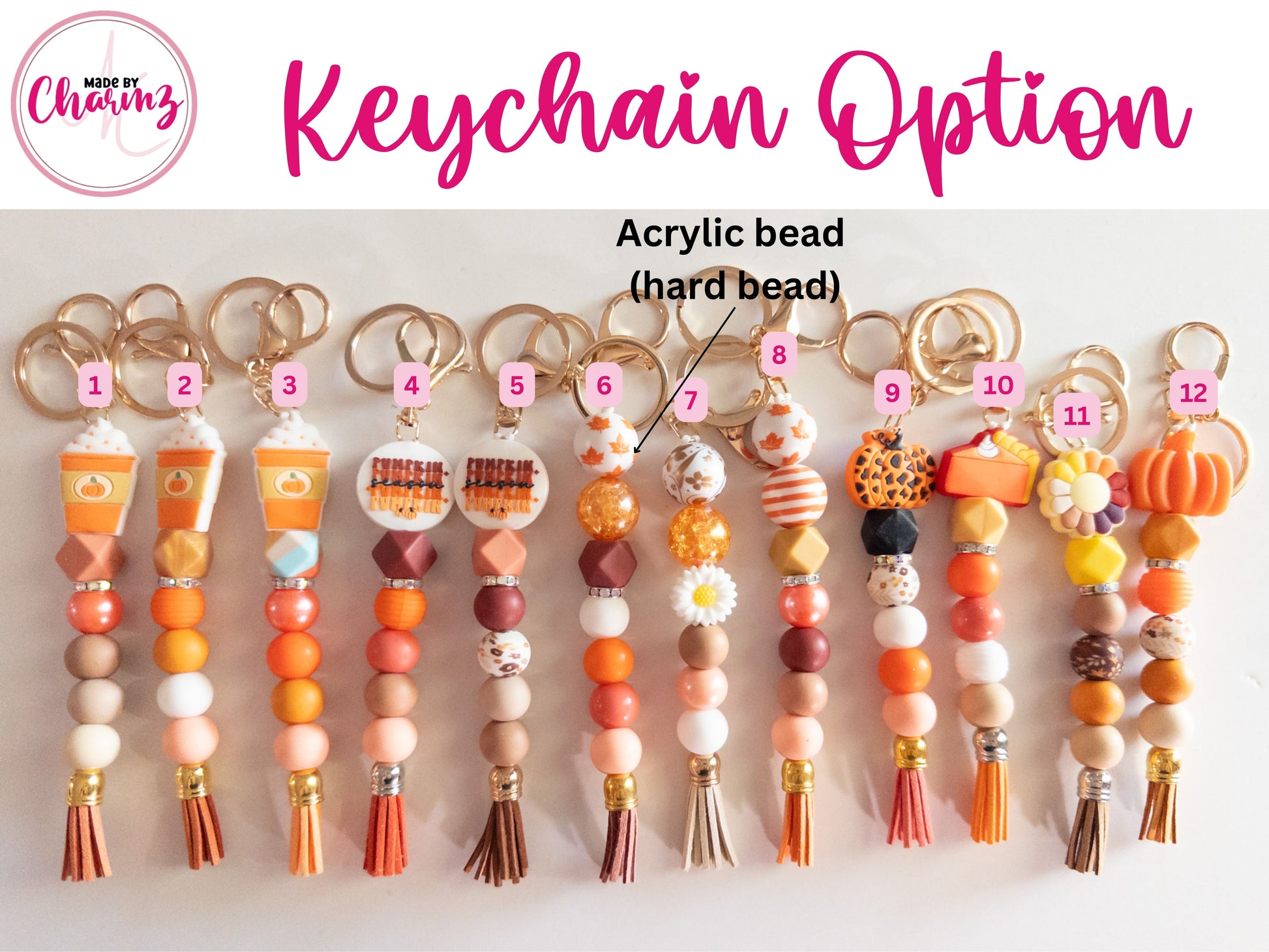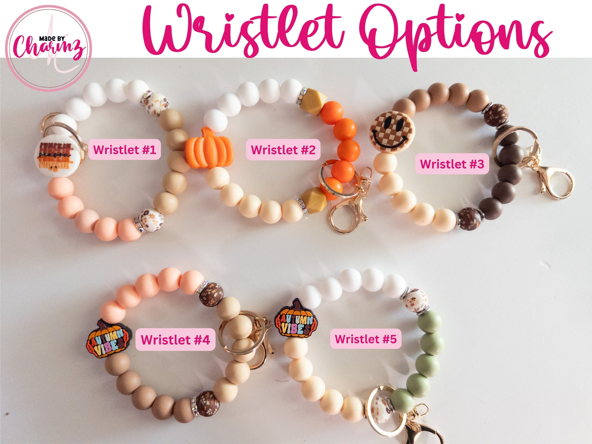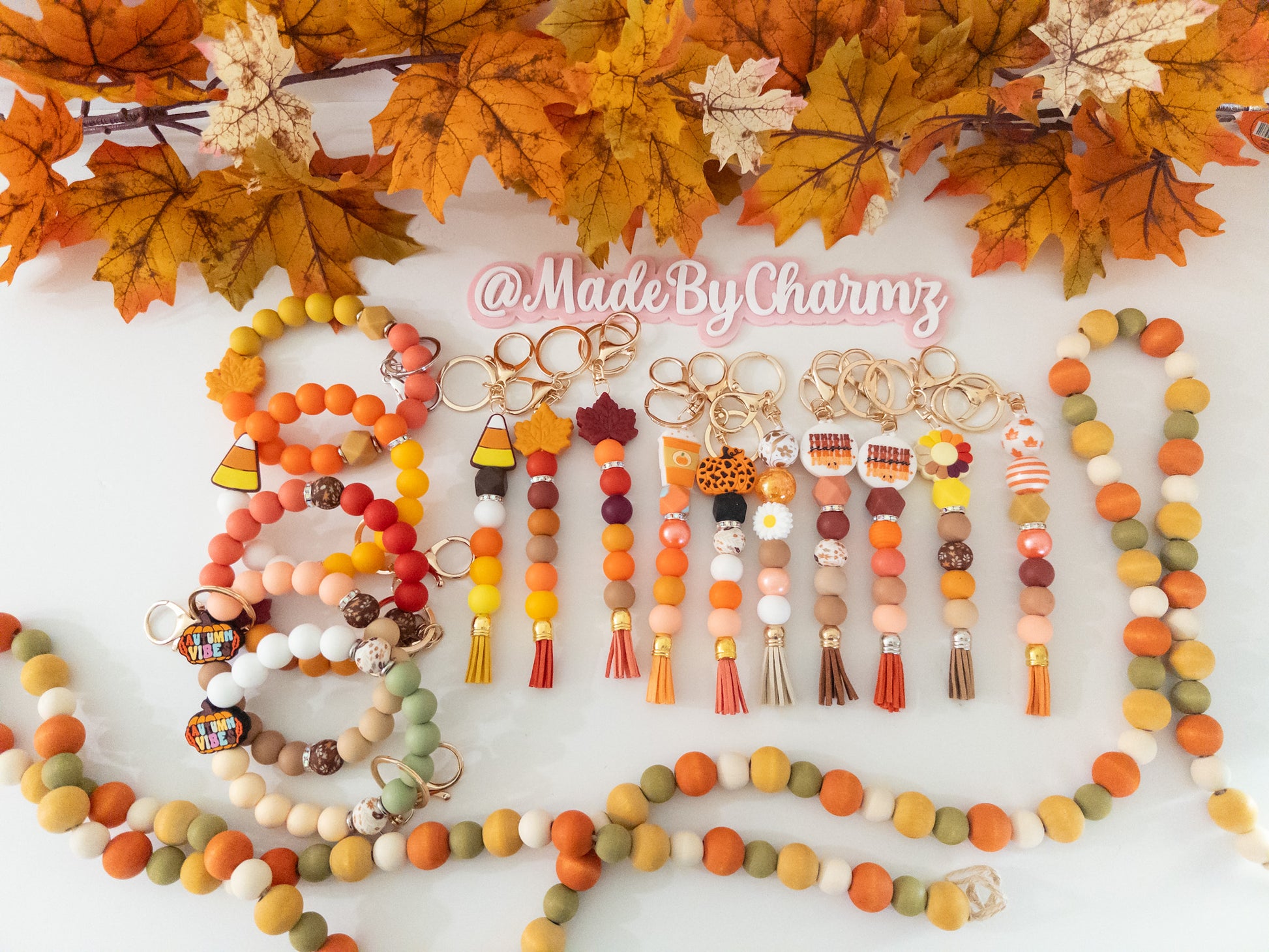 Our handmade Fall keychains and wristlets are the perfect gift this Fall/Autumn Season. Made with silicone beads and a gold, rose gold or silver snap hook keyring, each keychain is unique and stylish. The perfect way to keep your keys organized and stylish!